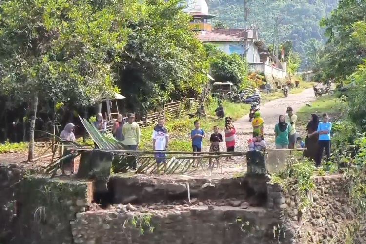 Penggunaan rakit bambu diperlukan oleh pasien itu sebab jembatan yang menghubungkan antara desa dan kecamatan rusak total setelah terjadi banjir hebat pada tanggal 21 Mei 2025 di daerah tersebut.